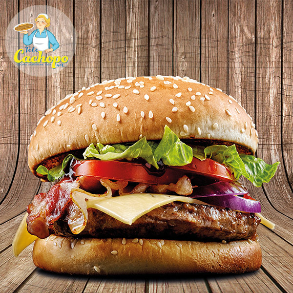 180 g de sabor asturiano, con beicon, aros de cebolla, salsa barbacoa y pan recién horneado.
