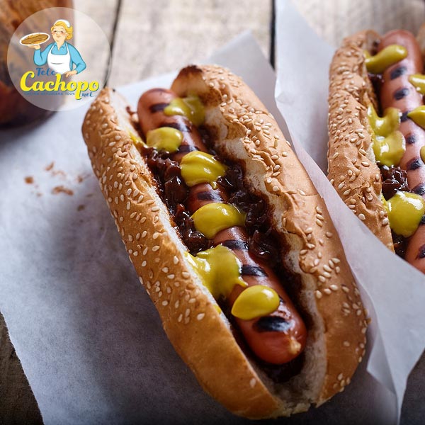 Salchicha XL, queso cheddar fundido, salsa chimichurri y jamón serrano.